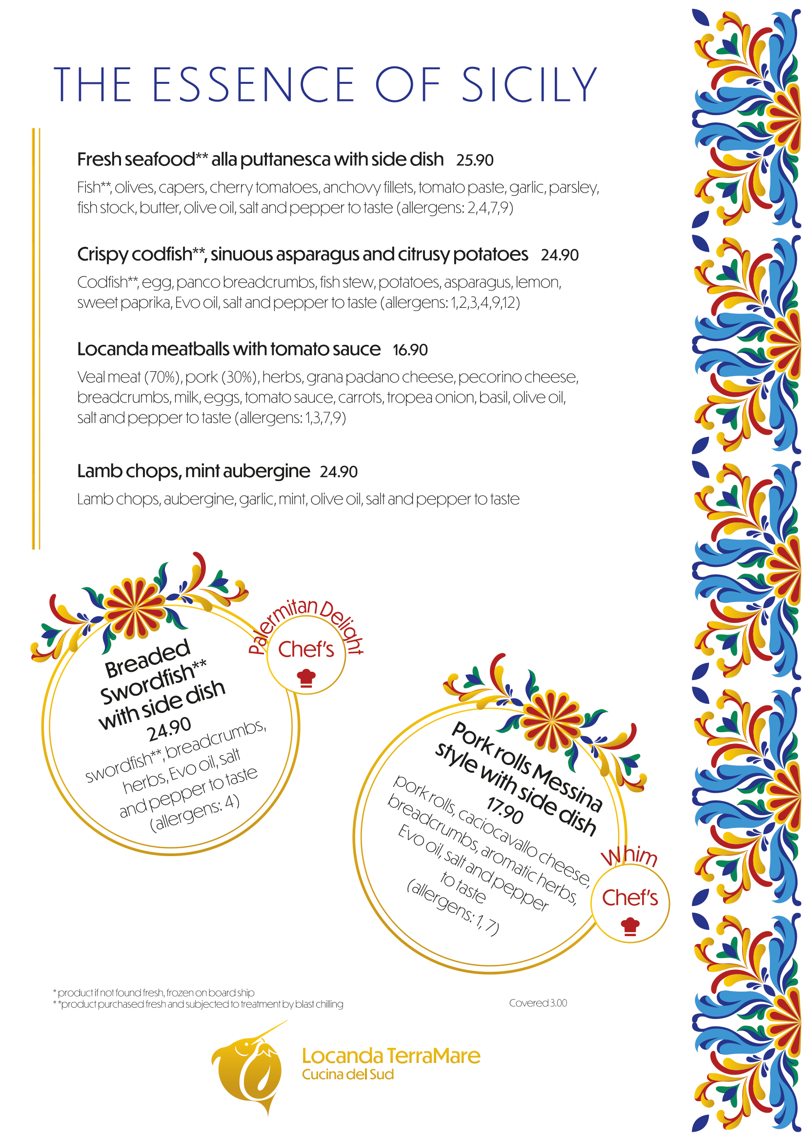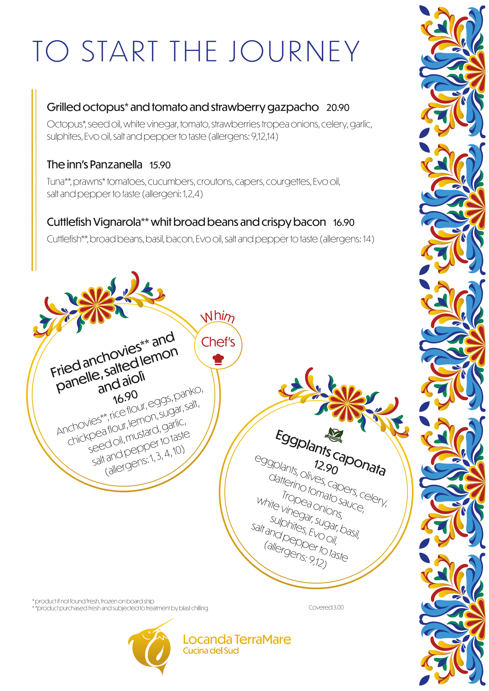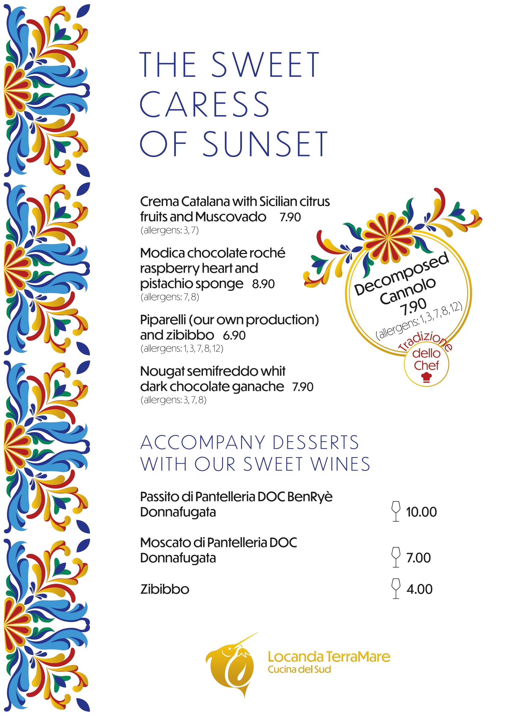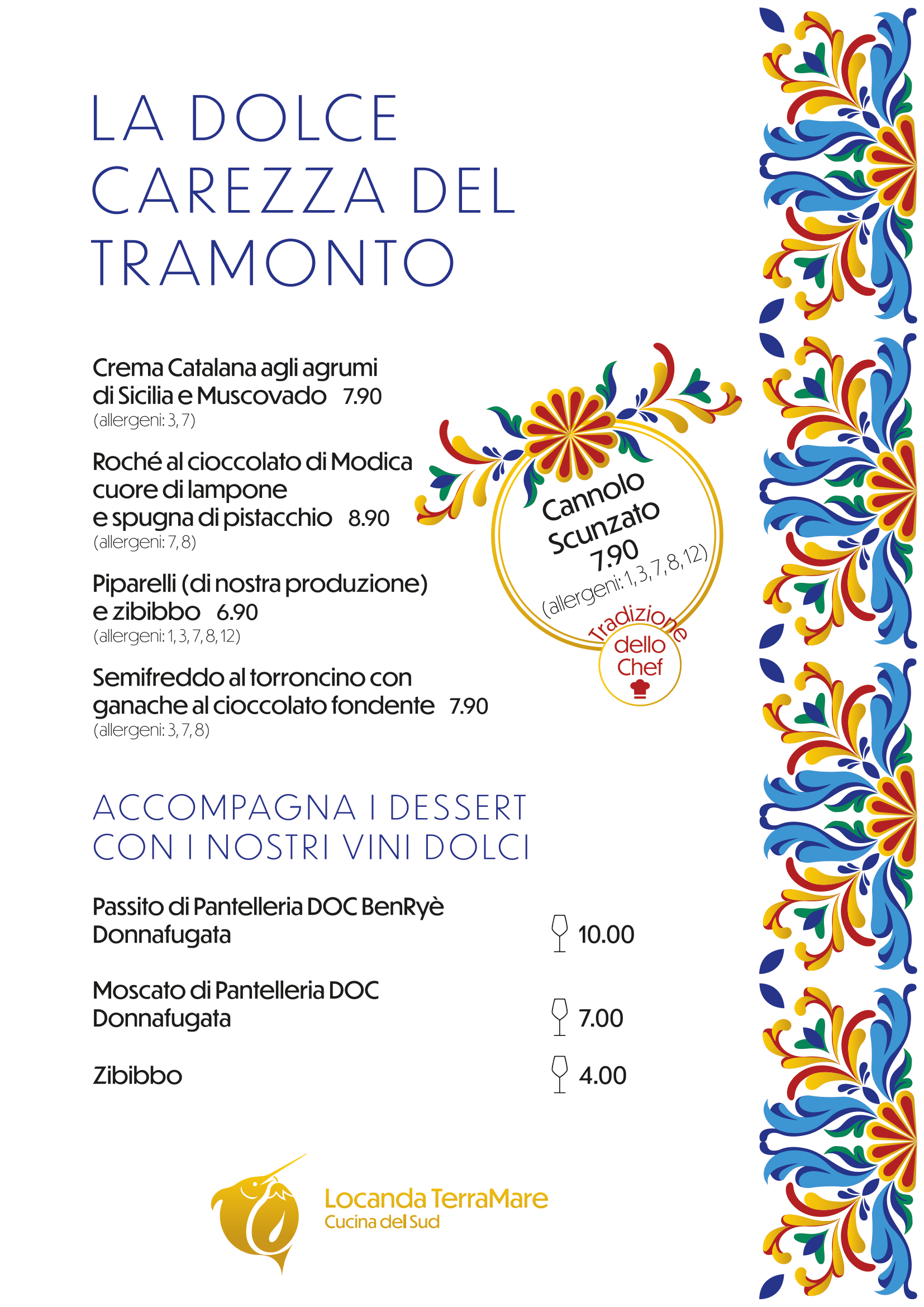 Il menù del ristorante TerraMare esprime il percorso professionale dello chef, con attenzione ai dettagli e l’uso di materie prime di alta qualità.
